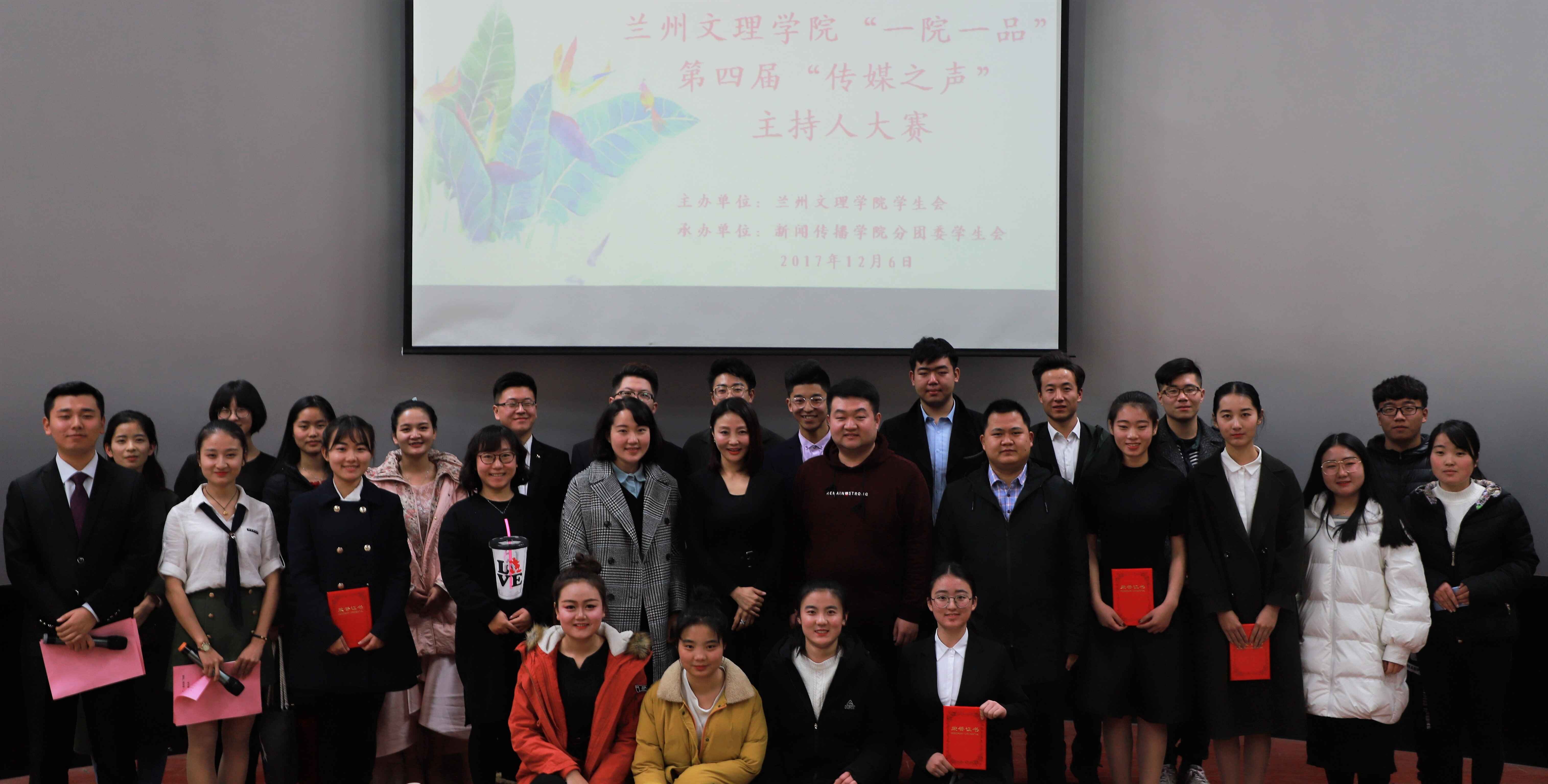 12月6号晚,“一院一品”第四届“传媒之声”主持人大赛的决赛在综合楼401教室落幕。此次大赛由27111新葡萄娱乐官网校团委主办,27111新葡萄娱乐官网分团委承办,参加此次决赛的嘉宾和评委有共青团27111新葡萄娱乐官网委员会副书记安婧,甘肃省广电总台优秀主持人、27111新葡萄娱乐官网副教授刘静,国家一级播音员、27111新葡萄娱乐官网特聘教师吴勇庆老师,27111新葡萄娱乐官网分团委负责人吴文娟老师,27111新葡萄娱乐官网影视编导教研室韩璐老师,27111新葡萄娱乐官网辅导员张臻年老师,各学院学生代表观看了本场比赛。