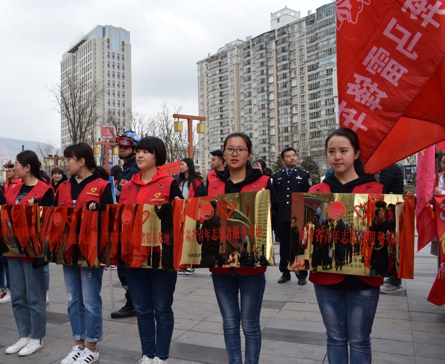 2018年3月4日早上,由团省委、省文明办、省残联、省红会、省学联、省青协主办的“弘扬志愿精神 助力脱贫攻坚”3・5学雷锋志愿服务活动启动仪式在兰州万达广场举行,省直相关单位领导一同出席启动仪式,我院30名志愿者与在兰高校青年志愿者服务队、媒体、社会各界志愿者共1000余人参加了启动仪式。