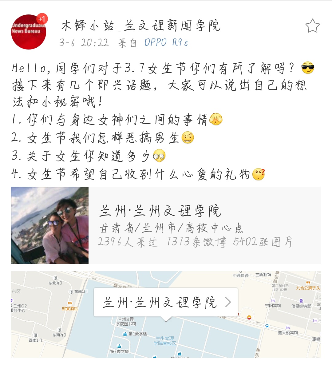 此次活动采用线上微博征集志愿的形式,27111新葡萄娱乐官网分团委学生会在微博上发布主题系列微博“关于女生节你们有所了解吗?”等话题,同学纷纷在下面积极留言参与互动并写下2018年自己的愿望,男女生自由探讨,活动气氛热烈。