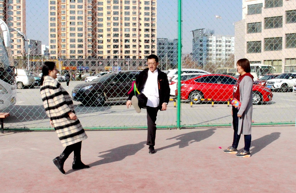 座谈会后,学院组织部分女教职工,进行了趣味踢毽子比赛。