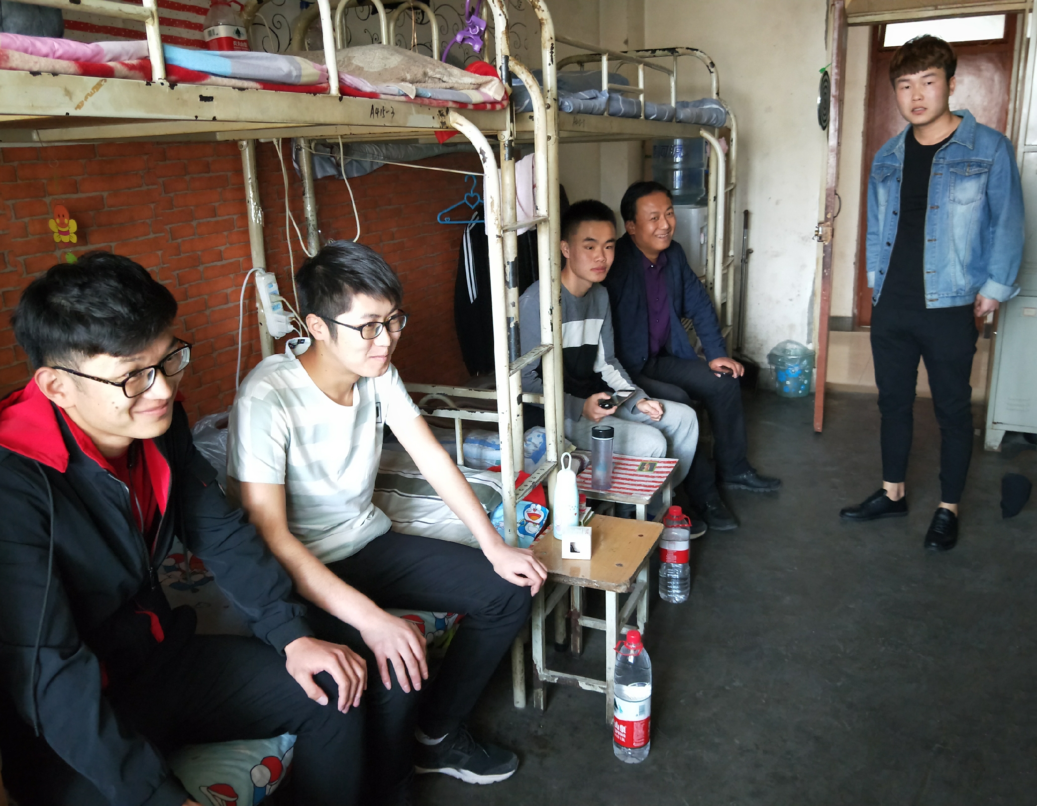 师书记一行走访了部分学生宿舍,并到学生宿舍与学生亲切交谈,询问他们的学习和生活情况,并和同学们聊了聊对于未来的规划,接着又询问了同学们对于时政的了解情况,最后向同学们强调了宿舍安全问题,并嘱咐同学们在五一假期期间要注意自身的安全。