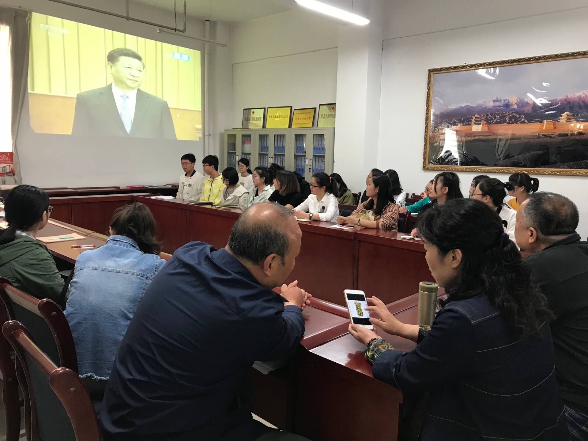 观看直播的教师学生党员一致认为总书记的讲话是一次深刻的马克思主义理论的专题辅导,是一堂生动的党课;纷纷表示是要认真学习近平总书记的重要讲话,认真学习马克思主义,在实际学习中应用克思主义,把马克思主义推进到教学和学习当中去。