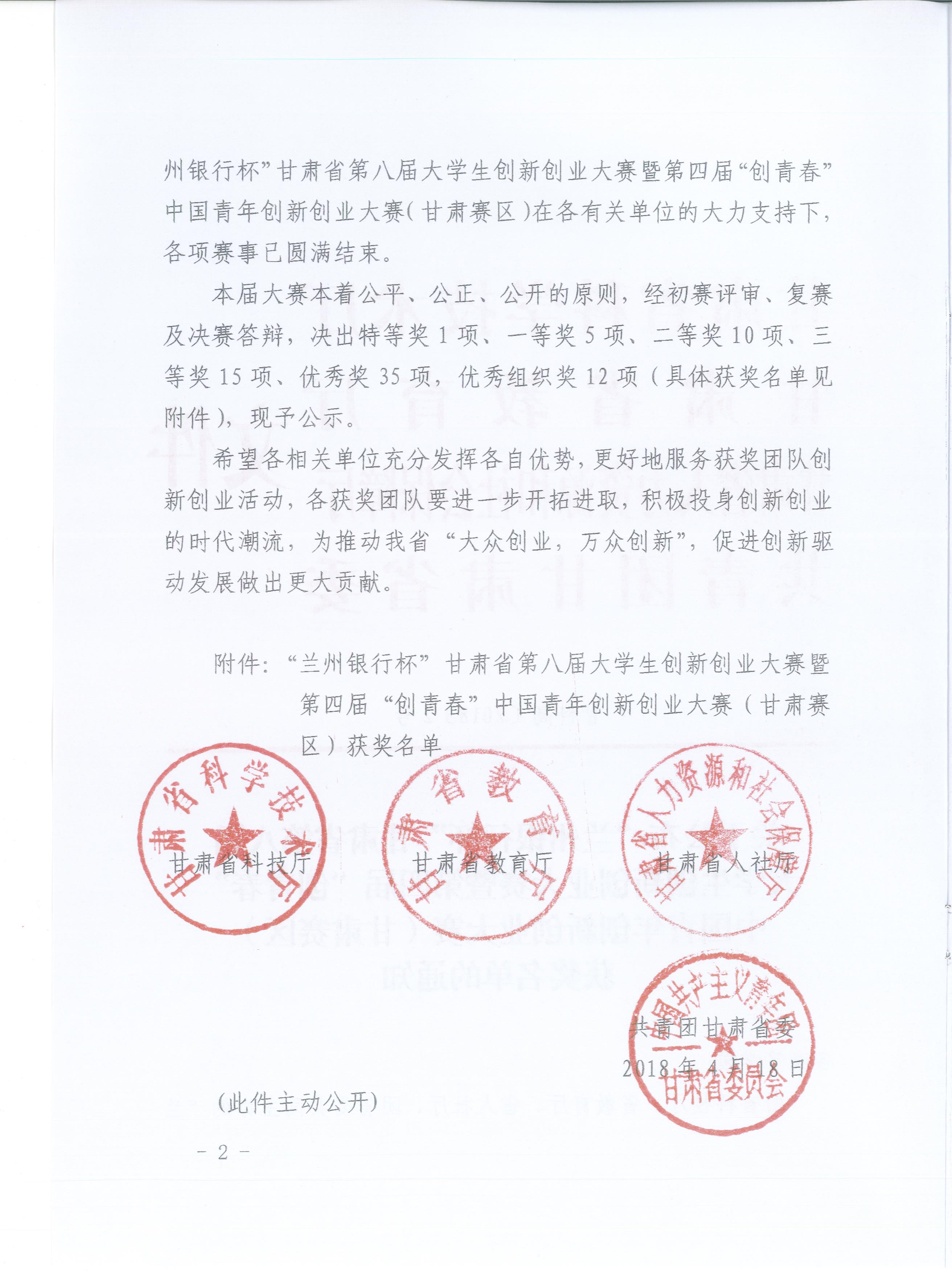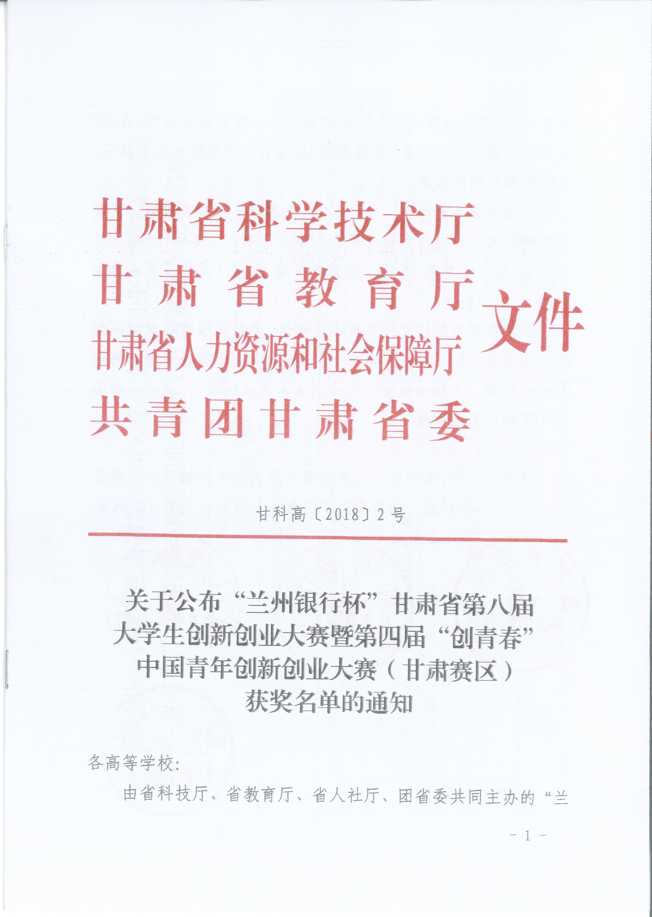 27111新葡萄娱乐官网在甘肃省第八届大学生创新创业大赛暨第四节“创青春”中国青年创新创业大赛(甘肃赛区)喜获佳绩