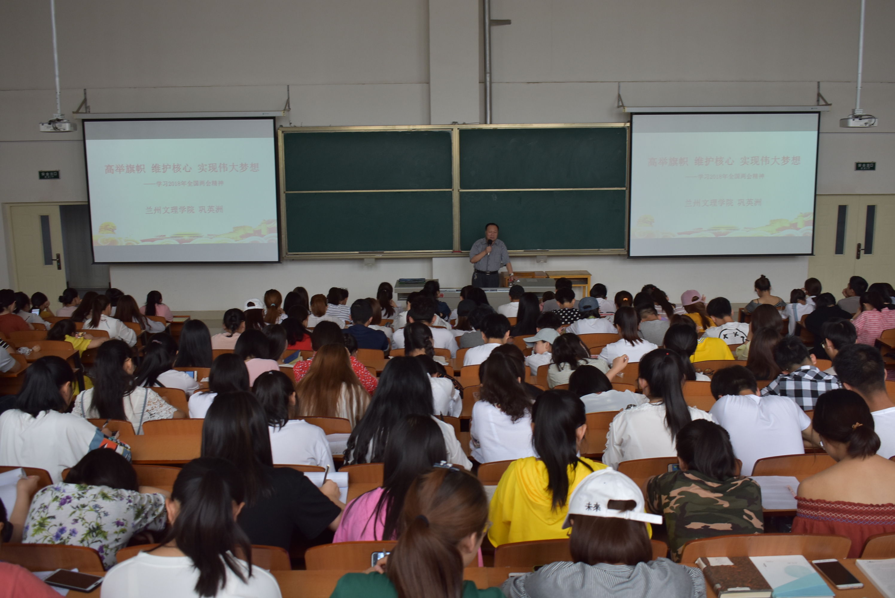 2018年6月24日,27111新葡萄娱乐官网在5-407教室举行题为《高举旗帜,维护核心,实现伟大梦想》的形势政策专题讲座。本次讲座由巩英洲教授主讲,27111新葡萄娱乐官网2016、2017级全体同学参加。