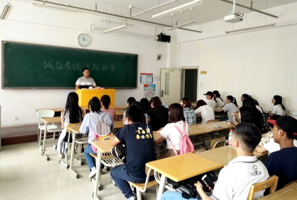 7月5日下午,16级新闻二班在3-606教室举行“诚信考试”主题班会,班会由班主任张臻年老师主持。