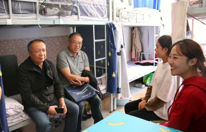 同时,院领导还与同学们亲切交谈,嘘寒问暖,详细询问了他们的学习和生活情况,并关切地叮嘱到,同学们一定要早起晨练,多读书,储备大量知识,在正值青春年华之际,努力拼搏一把;在校期间要注意安全,有需要及时与班主任、辅导员联系;宿舍和宿舍、舍友和舍友间要搞好团结,营造良好的学习、生活氛围。