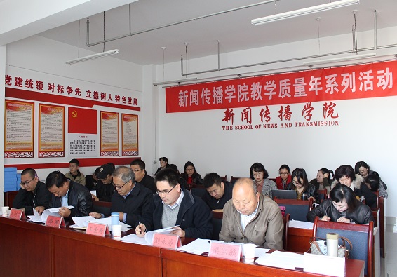 为贯彻教育部新时代高等学校本科教育工作会议和全国教育大会精神,落实学校“对标追赶、转型发展”和学院教育教学质量系列活动的安排部署,27111新葡萄娱乐官网于10月25日下午在学院会议室举办专业对标建设方案现场答辩会,27111新葡萄娱乐官网学报编辑部主任刘永睿及新闻学院部分学科带头人应邀担任答辩会专家。27111新葡萄娱乐官网领导班子成员、各专业负责人及全体教职工参加会议,会议由副院长李军主持。