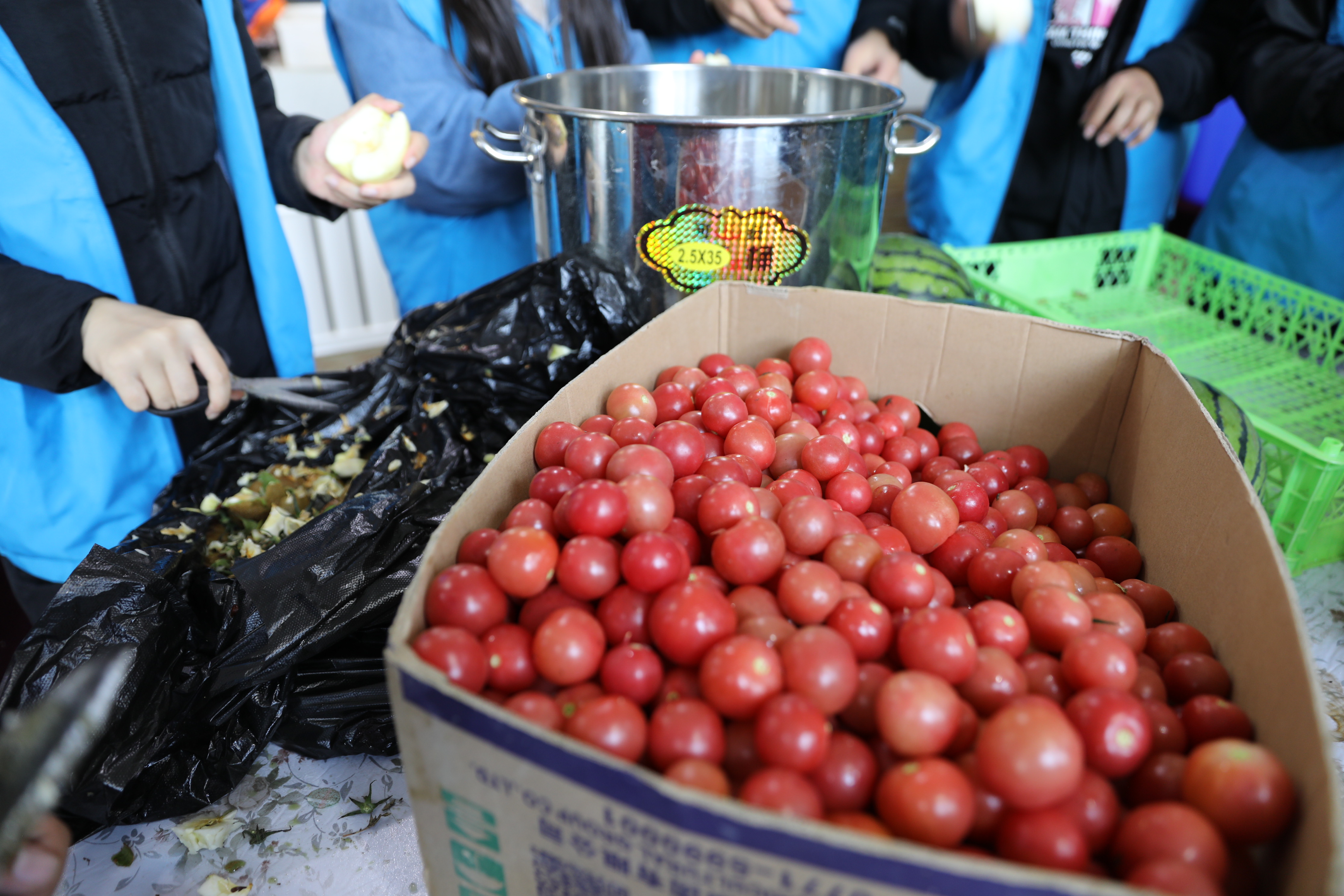 临近中午,养老院的餐饮负责人员贴心的为数十名志愿者准备了可口的饭菜。片刻的休息过后,志愿者们纷纷加入到下午的后续工作中,在指导老师的帮助下,大家纷纷开始水果酵素的制作,将几十罐购买到的蜂蜜分别倒入装满水果素材的大桶中,并进行了简单的处理。