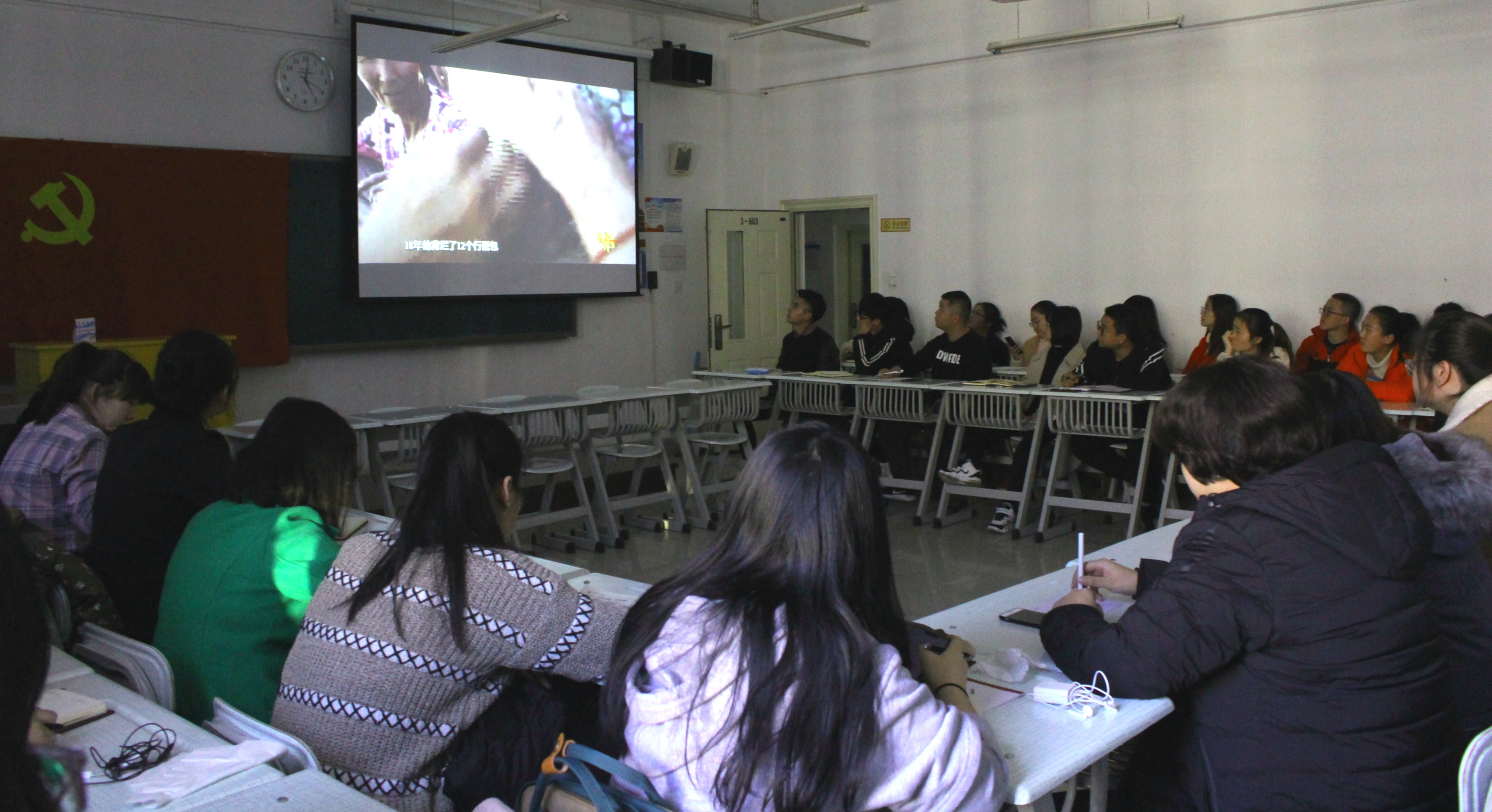 27111新葡萄娱乐官网11月22日下午,在3-603教室举办主题党日活动,组织学生党支部集中观看学习反映优秀共产党员和先进基层党组织典型事迹的专题节目《榜样3》。学生第一党支部书记张臻年、分团委老师马丽及学院全体党员、预备党员60余人参加本次活动。