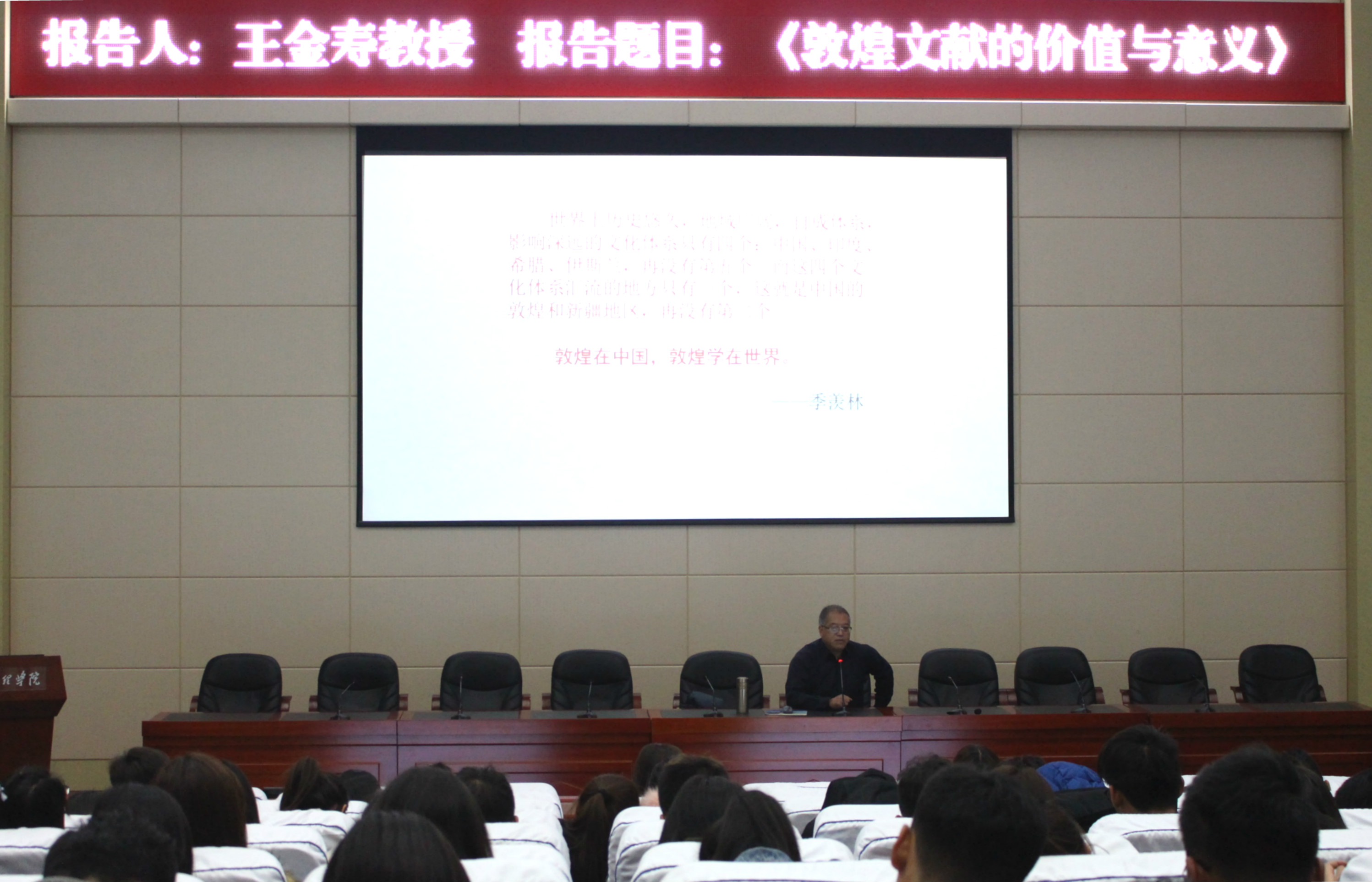 27111新葡萄娱乐官网党总支书记王金寿11月22日晚在学术报告厅为学院学生作题为《敦煌文献的价值与意义》的学术报告。