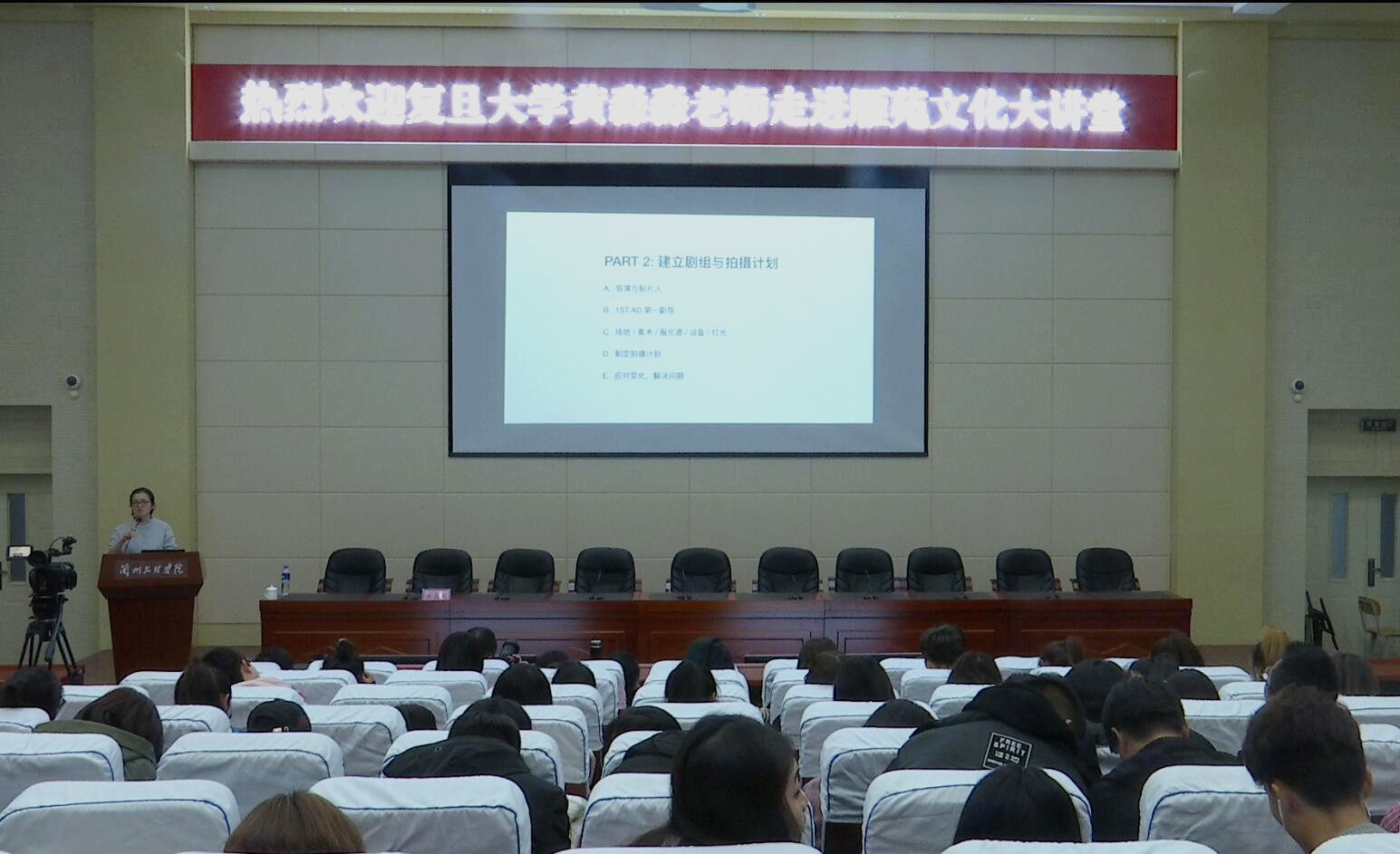 讲座中,黄淼淼老师首先介绍了有关电影制作的优秀人物,以及好莱坞中的大咖,她用自己对电影制作的经历为学生提出了“年轻一代的我们不能对电影制作有顾虑,要大胆做,不能被虚拟的世界淹没”。接着她通过展示电影《单曲循环》的花絮,为学生们讲解一部影片从拍摄到发布的全过程。