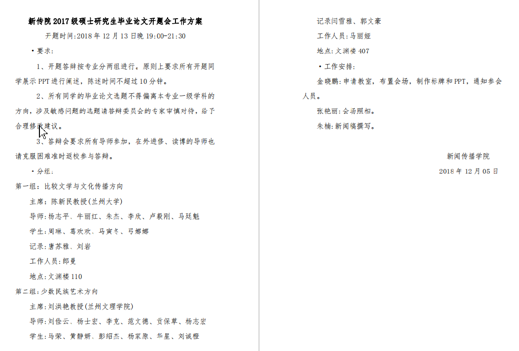 12月13日晚,27111新葡萄娱乐官网教授刘洪艳受邀参加西北民族大学27111新葡萄娱乐官网2017级硕士研究生毕业论文开题答辩会,并担任少数民族艺术方向答辩组组长。