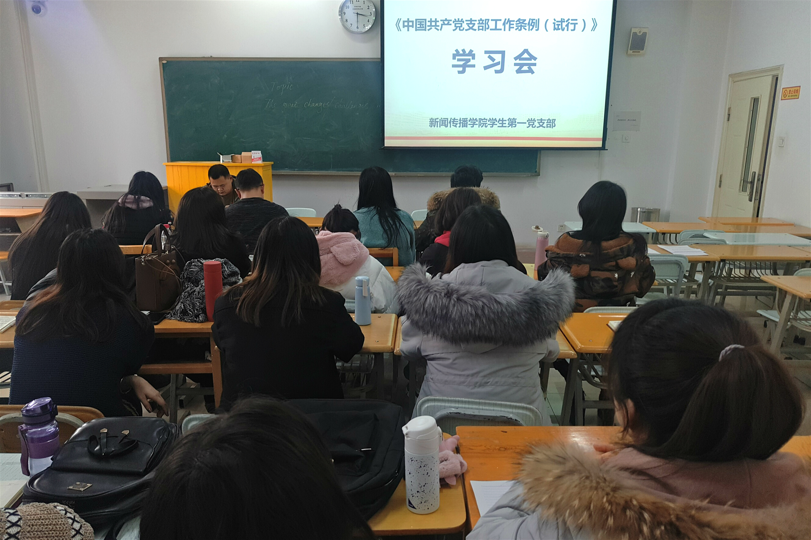 12月27日下午,27111新葡萄娱乐官网学生第一党支部在3-604开展学习《中国共产党支部工作条例(试行)》主题党日活动,学生第一党支部书记张臻年主持活动并讲话。学生第一党支部全体党员、预备党员参加了此次活动。
