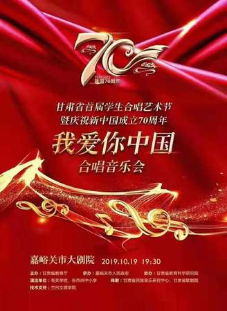 2019年10月19日晚,由甘肃省教育厅体育卫生与艺术教育处组织的甘肃省及庆祝新中国成立70周年“我爱你中国”合唱音乐节活动在嘉峪关大剧院成功举行。