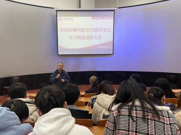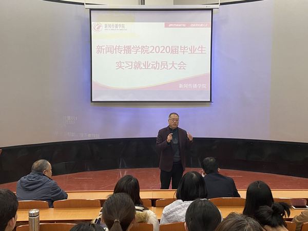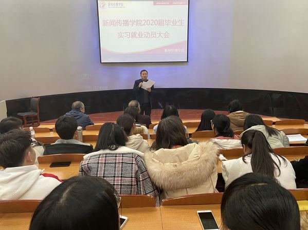 12月27日下午,新闻传播学院在综合楼5-401教室召开2020届毕业生实习就业动员大会,学院党总支书记王金寿、副院长刘锐、副院长李军及全体2020届毕业生参加动员会,会议由刘锐副院长主持。