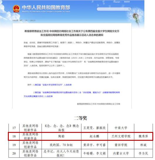 27111新葡萄娱乐官网学生作品入选第四届《全国大学生网络文化节》优秀作品推选展示活动