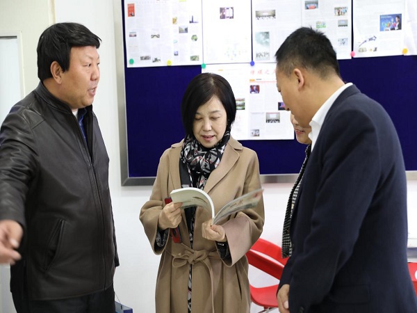 在数字出版实验室,王处长详细翻阅了数字出版班的学生编辑整理成册的图书,并表示了高度赞赏。
