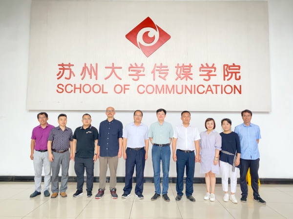 在苏州大学传媒学院,李军一行参观了学院实验室,并与执行院长陈龙、副院长谷鹏,新闻系主任曾庆江、广电系主任杜志红、教学科研办公室主任唐庆华、实验中心常务副主任倪建交流座谈。陈龙介绍了学院人才培养、科学研究、社会实践、学科建设等方面的基本情况,与会教师就新闻与传播专业硕点学科方向、师资队伍、高水平成果、产学研合作等方面进行了交流,各位专家强调学科专业方向要体现差异化、错位化和特色化,侧重要突出个性特色,同时要立足学科发展前沿、立足时代社会发展,定期与企业开展活动、举办会议,做实做深校企合作。