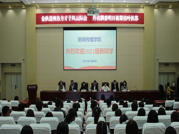 最后,学院副院长李军,就“做应用型新闻传播人才培养的引领者”这一办学定位,以“基于文化自信的应用型新闻传播人才培养路径”从十个方面进行阐述,同时结合工作经历,对新生学业发展提出了期望和要求:一是同学们要适应大学生活,积极拥抱生活;二是建立远大理想,培养家国情怀,将自己的梦与国家梦结合起来,不负青春;三是要在心灵深处埋下真善美的种子,不负韶华,努力学习,全面发展,做一个能感知幸福的人。并祝愿新生们能够拥有最美好的大学时光,成为德智体美劳全面发展的社会主义合格建设者和可靠接班人。