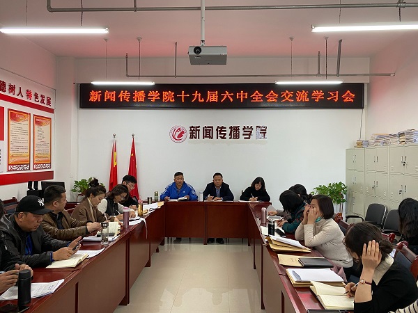 与会人员围绕学习内容结合自身实际工作进行了研讨。教工第一党支部书记弥建立以“马克思主义新闻观中国化的当代探索”为主题,从中国新旧媒体之变、习近平对马克思主义新闻观中国化的重大发展、马克思主义新闻观中国化当代探索创新性和下一步打算四个方面进行了阐述。教工第二党支部书记刘洪艳围绕深刻认识“十个坚持”进行了交流,她表示在现代化强国的建设过程中,一定要坚持党的领导,坚持把党的十九届六中全会精神融入到工作的全过程。要坚定理想信念,用马克思主义新闻观武装头脑,立志做好中华文化的传播者,为“讲好中国故事,传播好中国声音”做出贡献。教工第三党支部书记梁宝毓表示,接下来要紧紧围绕学习贯彻全会精神精心备课,当好党的理论阐释者、党的声音传播者、党的政策贯彻者,推动六中全会精神深入课堂,引导青年学生以学习《决议》为大纲,坚定感党恩、听党话、跟党走的信心决心,更加自觉地做习近平新时代中国特色社会主义思想的坚定信仰者和忠实实践者。同时,要将学习成果落实到为群众办实事的行动中去,从一点一滴做起,用自己的行动影响身边的人。学生第二党支部书记杨玮指出,作为教师,必须要认真学习领会十九届六中全会精神,切实提高做好新时代大学生思想政治工作的本领,用好十九届六中全会这本思政教材,把百年光荣党史融入到教学活动之中。作为支部书记要把学习宣传贯彻十九届六中全会精神作为今后一个时期的工作重点,深入学习理论,加强自我修炼;传承红色基因,竭诚为生服务;勇于担当作为,树立远大抱负。