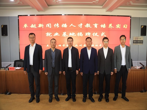 在双方的共同见证下,李军签订合作协议并与魏嘉共同为“卓越新闻人才教育培养实习就业基地”揭牌。今后双方将秉承“优势互补、协同创新、共建共享、合作双赢”的原则,共同开展产、学、研等全方位深度合作,以期适应全媒体发展的新形势,积极培养适应市场需求的高素质、应用型新闻传播人才。